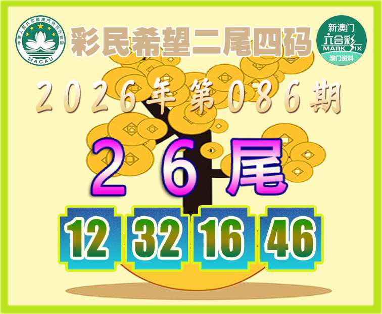 086期:『彩民希望』 ♠️二尾四码♠️【26尾主:12.32.16.46】开:12