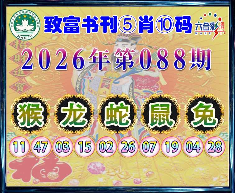 088期: 🍙『致富书刊』 🍙⑤肖⑩码🍙【猴蛇鼠兔】开:龙27