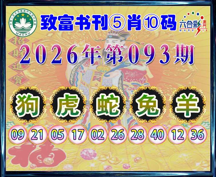 093期: 🍙『致富书刊』 🍙⑤肖⑩码🍙【狗虎蛇羊】开:兔40