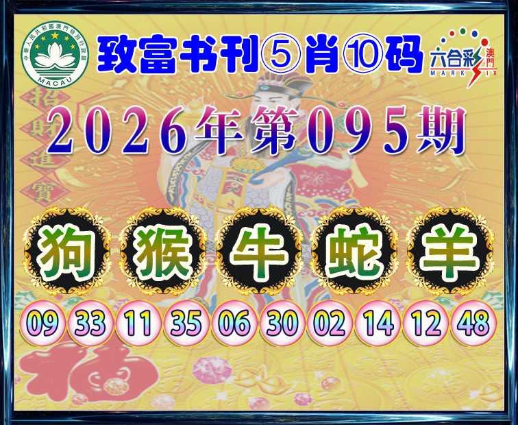 095期: 🍙『致富书刊』 🍙⑤肖⑩码🍙【狗牛蛇羊】开:猴35