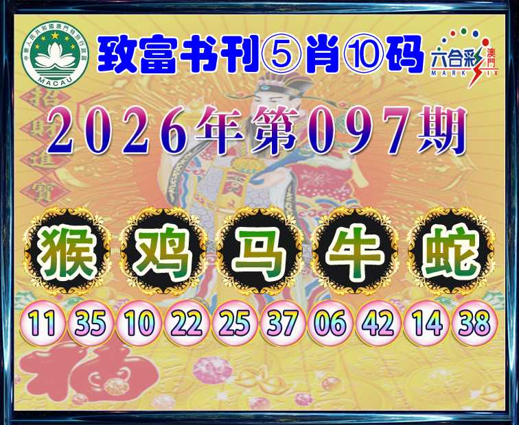 097期: 🍙『致富书刊』 🍙⑤肖⑩码🍙【鸡马牛蛇】开:猴11