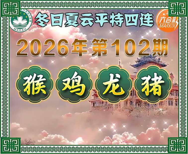 102期:〖冬日夏云〗 🥖平特四连🥖【猴鸡龙猪】开:猴47,鸡46,龙03,猪20