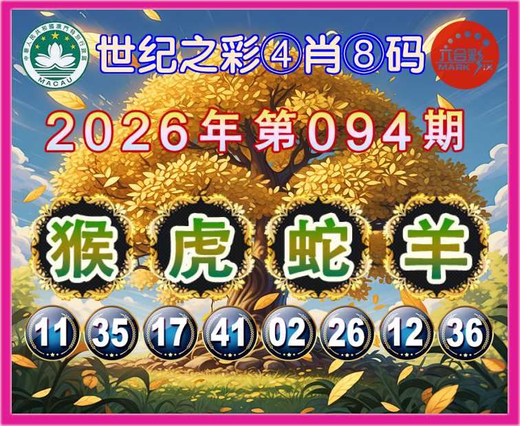 094期:〖世纪之彩〗 👩‍🌾④肖⑧码👩‍🌾【猴蛇羊】开:虎17