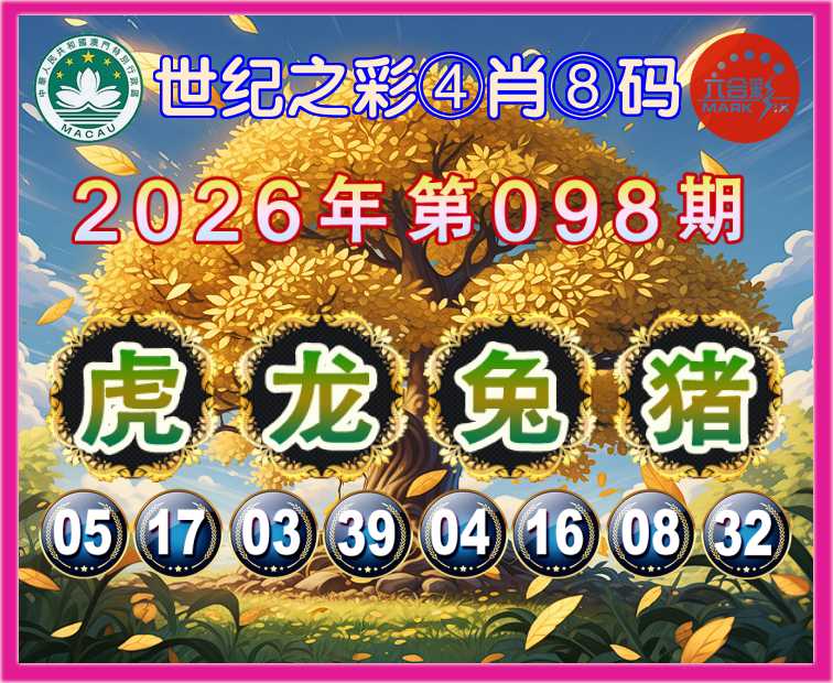 098期:〖世纪之彩〗 👩‍🌾④肖⑧码👩‍🌾【龙兔猪】开:虎17